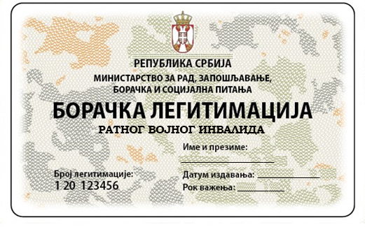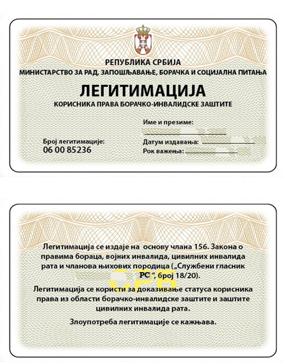 ОБРАЗАЦ ЛЕГИТИМАЦИЈЕ КОРИСНИКА ПРАВА БОРАЧКО-ИНВАЛИДСКЕ ЗАШТИТЕ